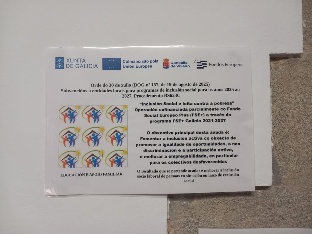“Inclusión Social e loita contra a pobreza”. Operación cofinanciada parcialmente co Fondo Social Europeo Plus (FSE+) a través do programa FSE+ Galicia 2021-2027.